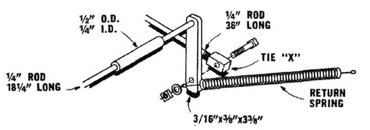 The exact method to attach the throttle cable to the engine depends on your engine type and style, but running the cables to the rear is standard. If you have a long enough cable, you can run it directly to the engine. Alternatively a throttle rod may be used as in the figures, and cable running from there.